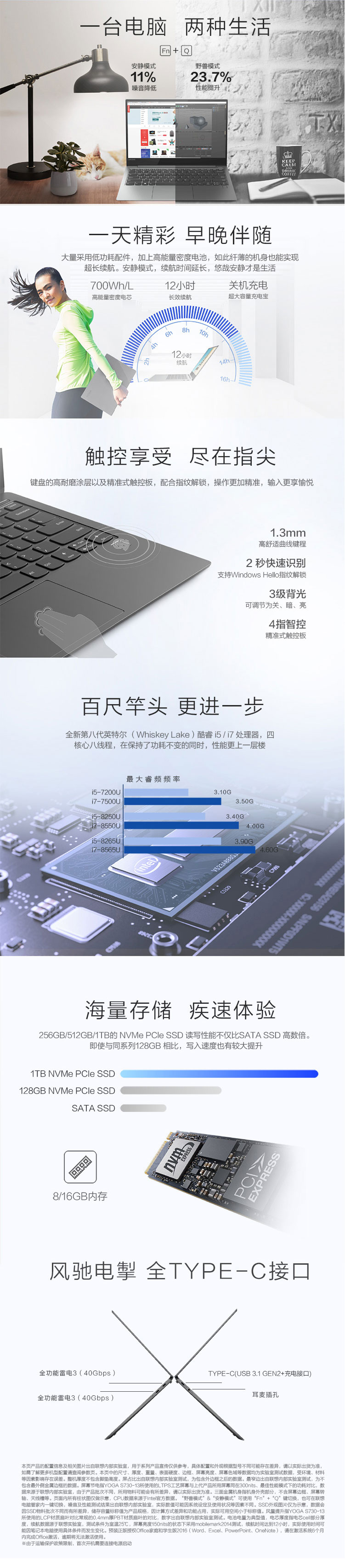 i5-8250U/Windows 10 家庭中文版/13.3英寸/8G/256G SSD/集成显卡/格调银